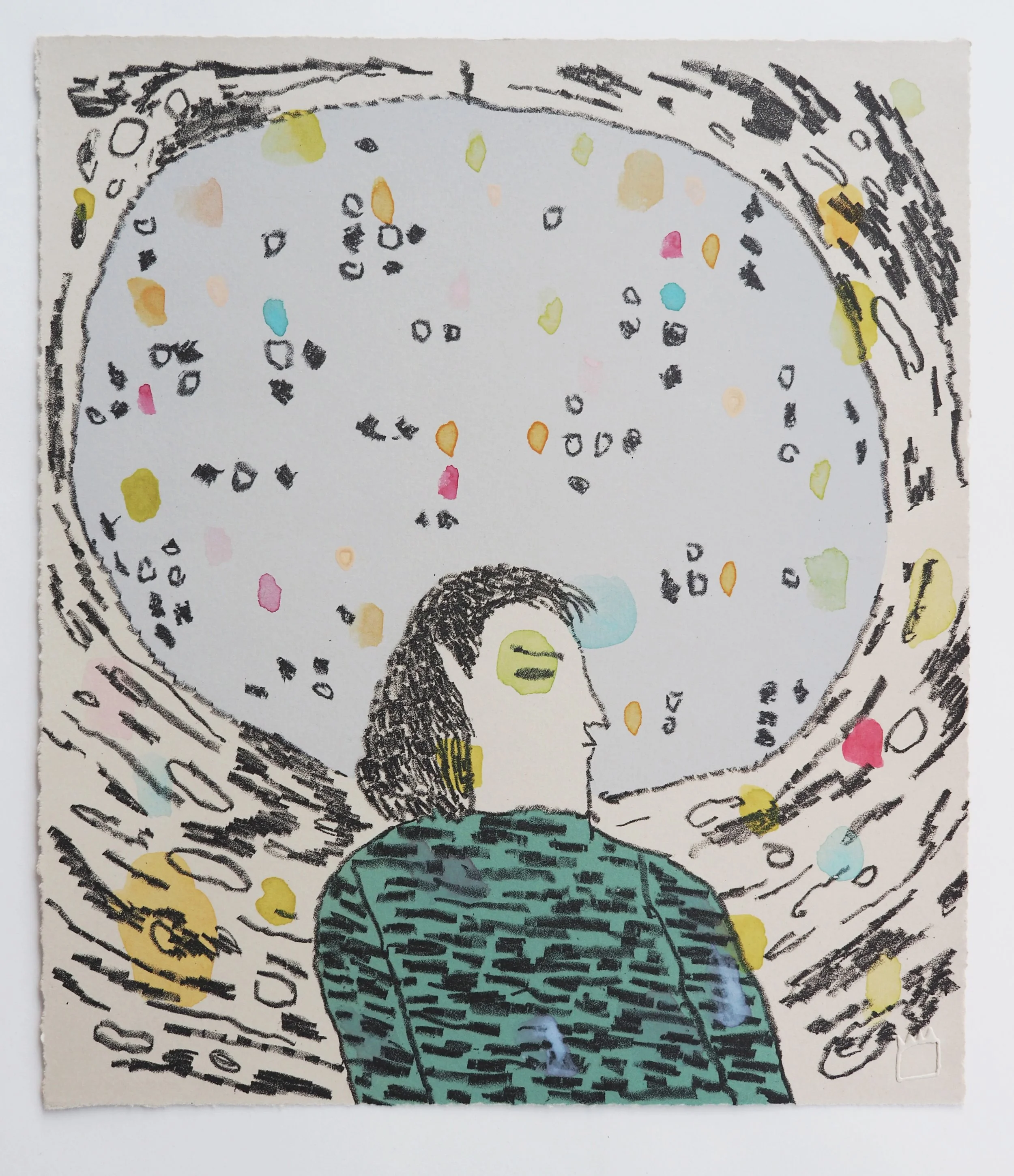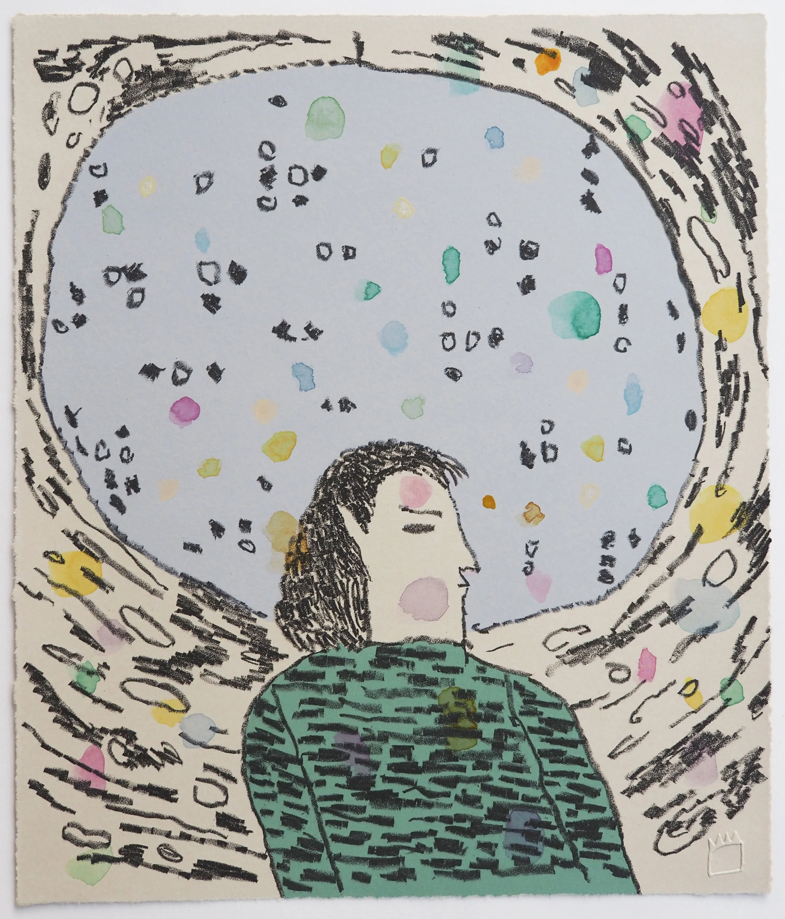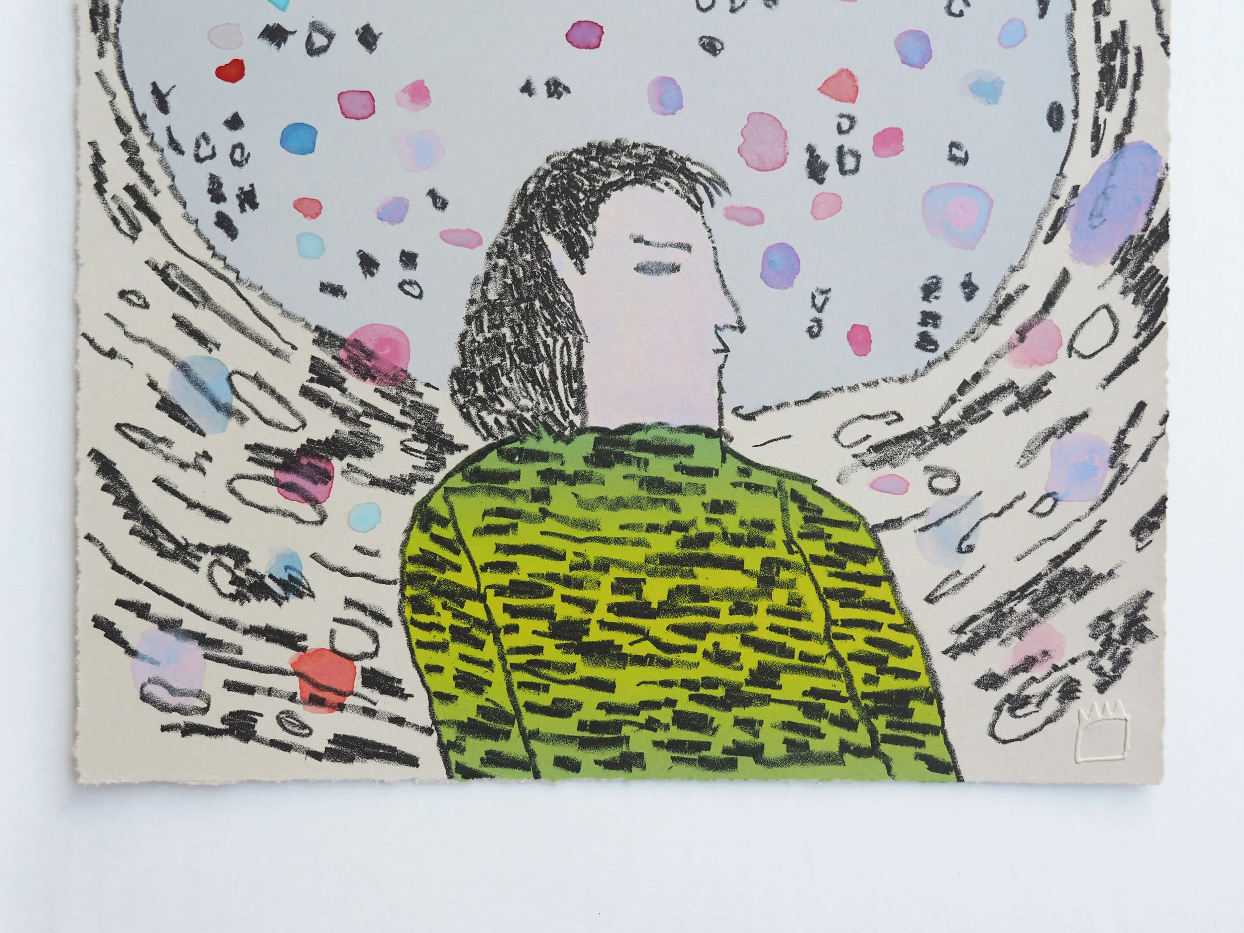 Chase Biado Elf Song by Chase Biado, 2025. Published by Speck Editions. Multi-run stone lithograph with watercolour by the artist. Printed onSomerset Grey Velvet, 9 x 10 ½ inches. Edition of 28 + Artist’s Proofs.